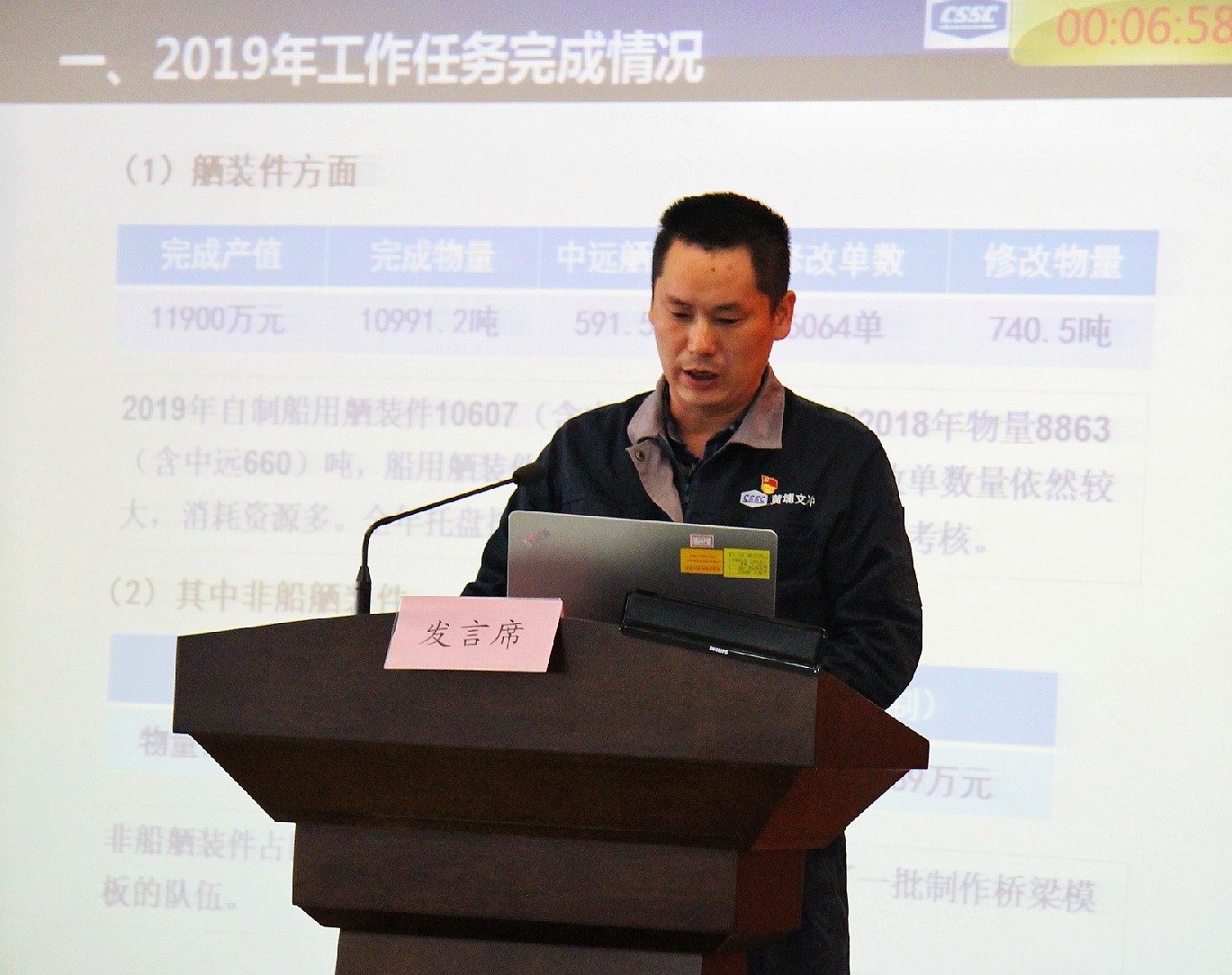 公司黨總支書記翁耿賢作了題為《抓住機遇,大膽開拓,推進公司健康發(fā)展》的主題發(fā)言。翁書記指出,2019年公司取得豐碩成果,產(chǎn)值、利潤、經(jīng)營承接均創(chuàng)歷史新高,這充分展示了公司全體干部員工努力拼搏的精神和干勁,也充分體現(xiàn)了公司黨總支“不忘初心,牢記使命”主題教育取得豐碩成果。為落實好總經(jīng)理2020年的工作部署,推進公司全面升級,翁書記對新一年工作和發(fā)展提出三點意見:一是抓住機遇謀發(fā)展,充分用好集團公司的政策和平臺,把握海上風(fēng)電市場井噴期和粵港澳大灣區(qū)建設(shè)的有利時機,推動公司重型鋼結(jié)構(gòu)制造產(chǎn)業(yè)轉(zhuǎn)型升級。二是大膽開拓創(chuàng)新生產(chǎn)組織方式、產(chǎn)品開發(fā)、管理模式、激勵機制,實現(xiàn)公司破局發(fā)展。三是確保公司健康發(fā)展,堅持黨建引領(lǐng),以制度為準繩,把依法治企落到實處,同時繼續(xù)堅定不移地以成本為抓手做好各項管理工作,抓好黨風(fēng)廉政建設(shè),營造風(fēng)清氣正的發(fā)展環(huán)境。