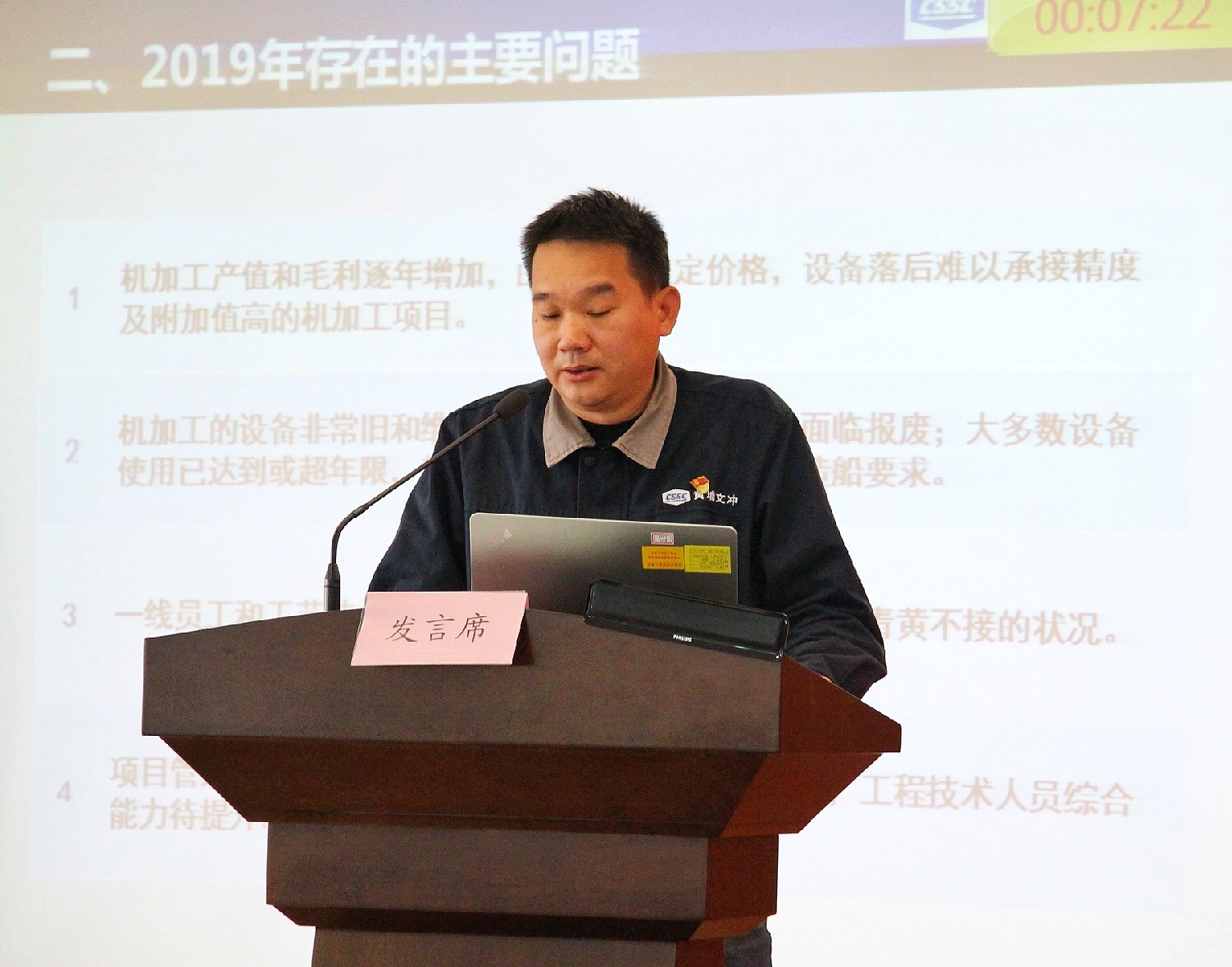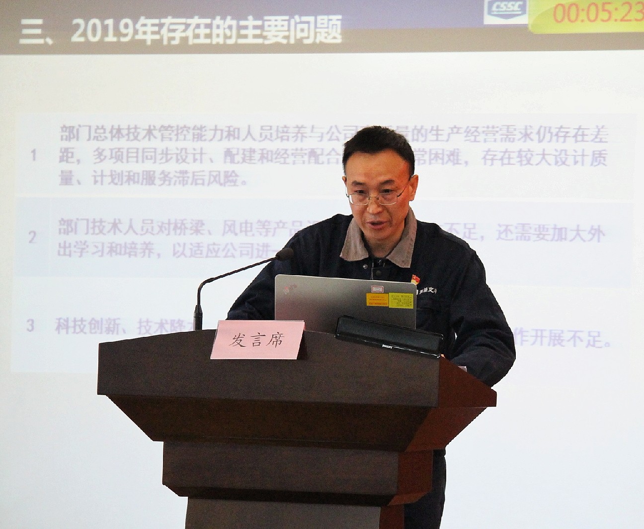 會上,公司總經(jīng)理陳宏領(lǐng)傳達了黃埔文沖公司經(jīng)營策略發(fā)布會精神,并對公司2020年工作進行經(jīng)營策略發(fā)布。陳宏領(lǐng)總經(jīng)理總結(jié)了2019年各部門的工作亮點,指出了存在的問題和不足,重點對2020年公司的生產(chǎn)經(jīng)營策略進行了發(fā)布。陳總要求,2020年重工公司經(jīng)營承接任務(wù)確保完成12億,力爭更大突破,生產(chǎn)要完成10億元產(chǎn)值,并實現(xiàn)利潤的同步增長。陳總強調(diào):2020年公司將認真貫徹落實黃埔文沖經(jīng)營策略發(fā)布會會議精神,秉承“突破非”的戰(zhàn)略方針,全面推進模擬法人考核機制落地實施,以鋼結(jié)構(gòu)工程專業(yè)承包一級資質(zhì)為突破點,以經(jīng)營產(chǎn)業(yè)化、生產(chǎn)規(guī)?;?、成本管控常態(tài)化為目標,完成2020年的各項任務(wù)目標,實現(xiàn)非船產(chǎn)業(yè)快速、高質(zhì)量發(fā)展。
