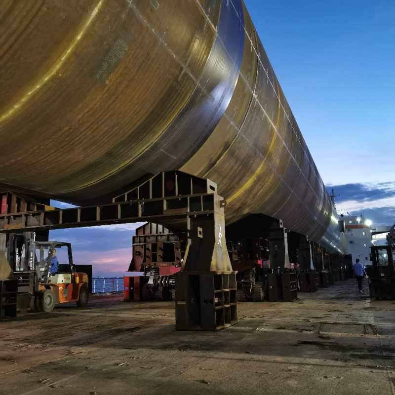 在中廣核后湖單樁項目兩套單樁裝船交付期間,7月17日凌晨5點20分,中山基地還完成了保利長大第七套單樁17#樁的裝船作業(yè)。一套套大口徑風電單樁產品的交付,充分展示了中山基地風電產品的生產制造能力!