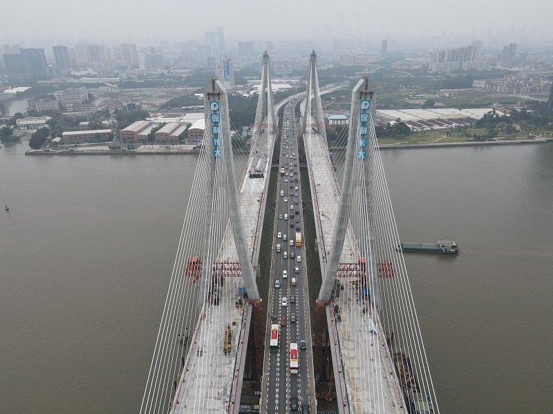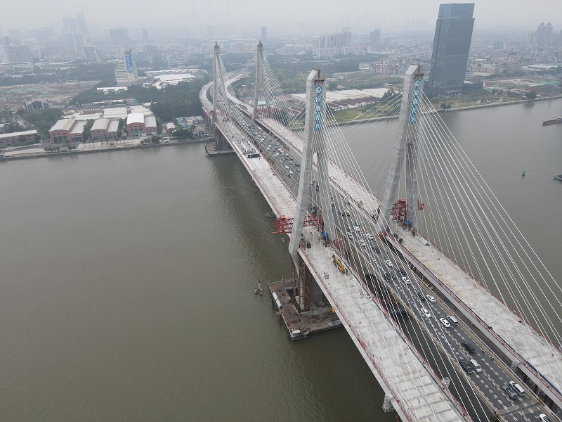 洛溪大橋始于1988年通車,是連接海珠區(qū)與番禺區(qū)的重要過(guò)江通道,隨著改革開(kāi)放社會(huì)經(jīng)濟(jì)發(fā)展,車流量日益增長(zhǎng),四車道遠(yuǎn)不足以解決交通擁堵問(wèn)題。2017年12月,洛溪大橋拓寬工程項(xiàng)目啟動(dòng),計(jì)劃在現(xiàn)有的洛溪大橋東西兩側(cè)各建一座3車道的雙塔雙索面疊合梁斜拉橋。該項(xiàng)目完成后,洛溪大橋雙向共有10車道,將有效解決交通擁堵問(wèn)題,也將為廣州城市景觀增添一道靚麗的風(fēng)景線。