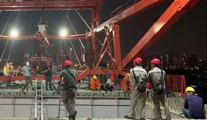 回顧項目進程,2019年9月8日公司開始了首件下料工作,10月25日順利通過了業(yè)主、監(jiān)理、總包、設(shè)計、質(zhì)量檢測等市政工程相關(guān)單位的聯(lián)合驗收。項目開工一年后,2020年10月12日,洛溪大橋拓寬工程主橋左幅的橋面吊機把最后一個鋼箱梁合攏分段起吊,經(jīng)過一線工人師傅48小時連續(xù)作業(yè),合攏段結(jié)構(gòu)焊縫全部驗收完工,并于10月30日舉行全線貫通儀式。至2021年2月8日23時08分,第一輛車駛過新橋橋頭,洛溪大橋新橋順利在春節(jié)前完成通車!