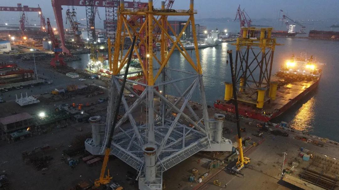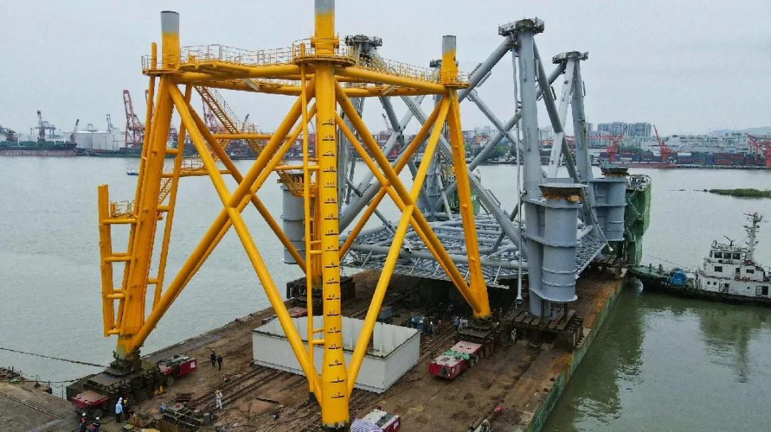 近日,由廣東省本土企業(yè)——廣州文船重工有限公司承建的中廣核惠州港口—海上風(fēng)電場(chǎng)項(xiàng)目220KV海上升壓站導(dǎo)管架基礎(chǔ)在南沙龍穴島生產(chǎn)基地順利交付。