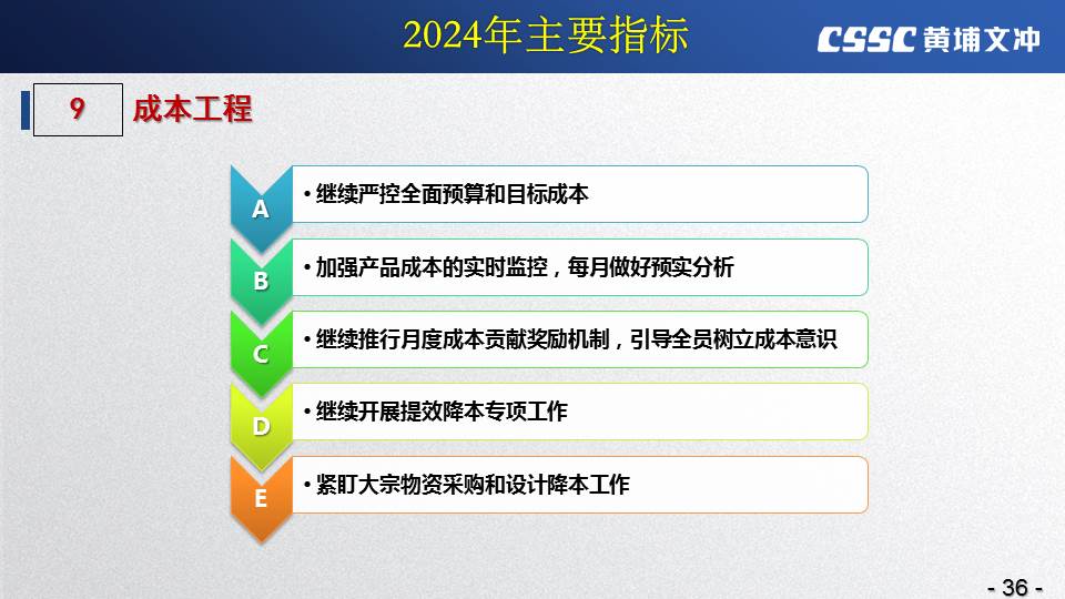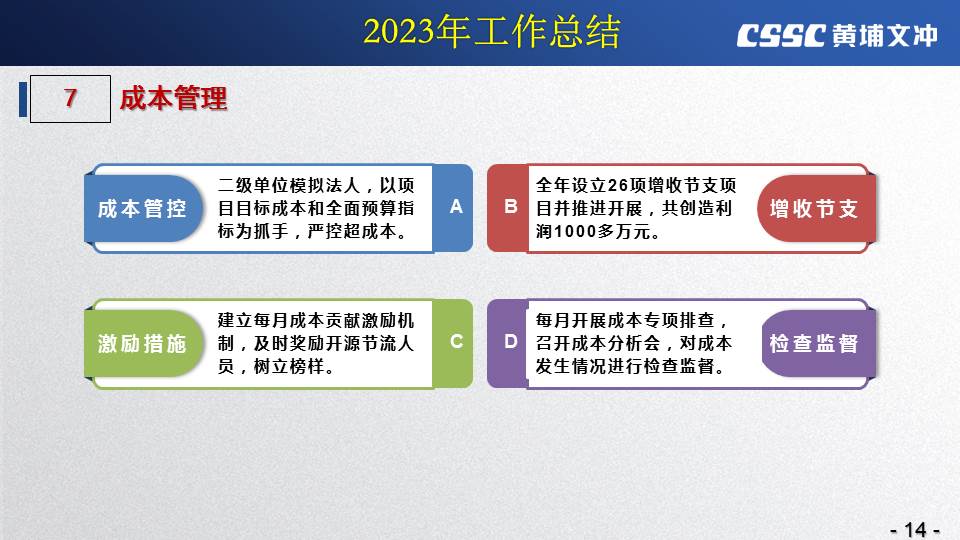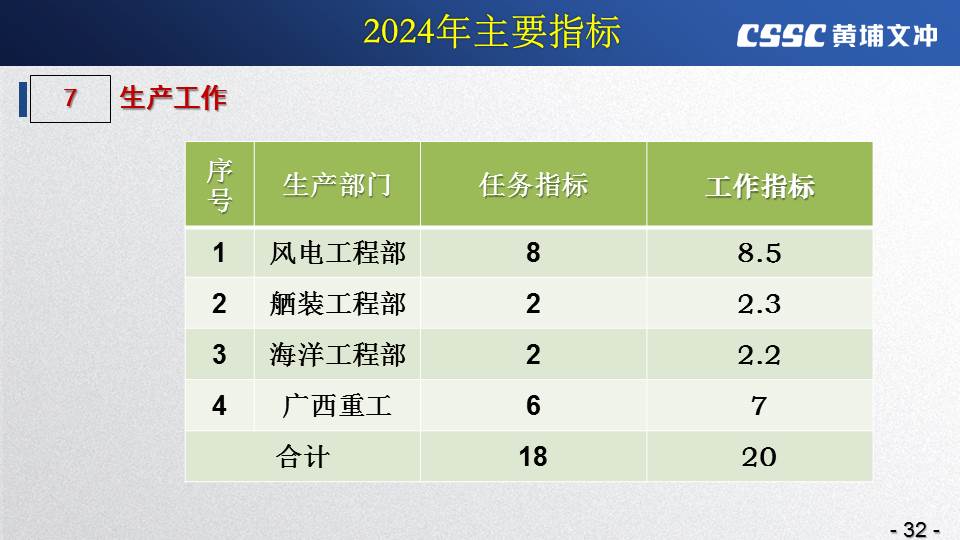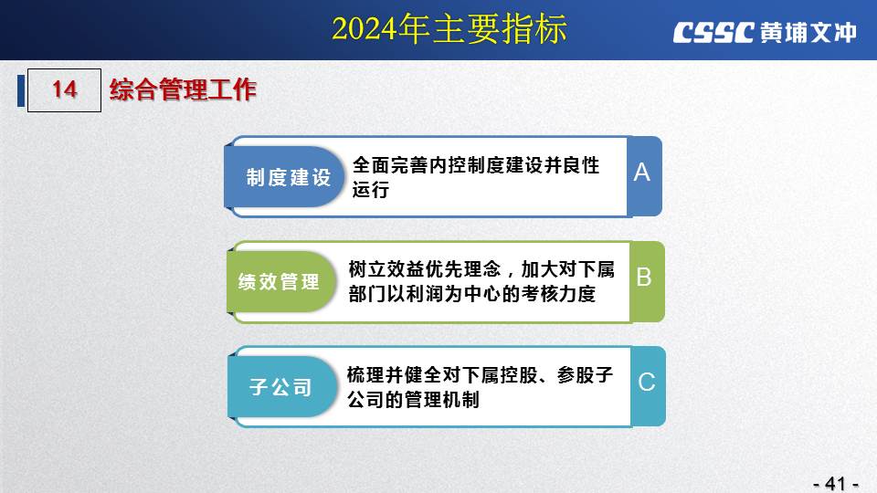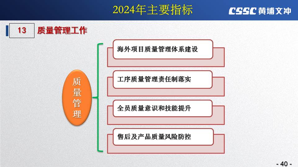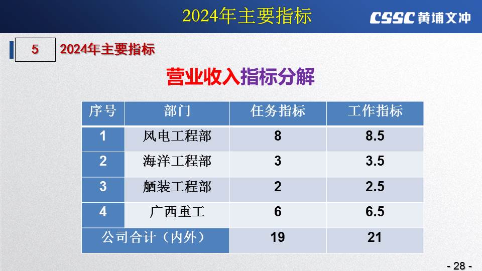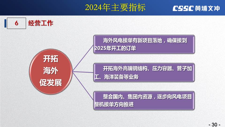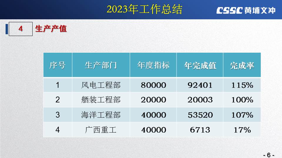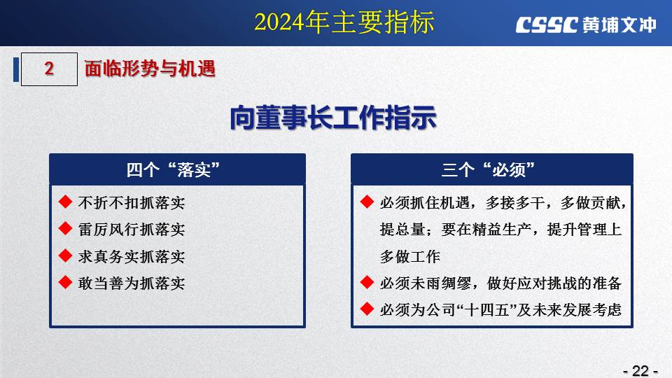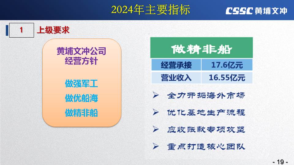 黃埔文沖公司羅兵總經(jīng)理指出,公司在過(guò)去的一年所取得的成績(jī)不容易,指標(biāo)基本完成,海外訂單有實(shí)質(zhì)性突破,國(guó)內(nèi)訂單承接情況不錯(cuò),管理團(tuán)隊(duì)精氣神不錯(cuò)。面對(duì)當(dāng)前的形勢(shì)機(jī)遇,羅總指出公司的未來(lái)發(fā)展大有希望!羅總要求全體干部員工要繼續(xù)保持高昂的斗志和滿滿的信心,繼續(xù)奮斗,并就公司2024年工作作了以下重要指示: