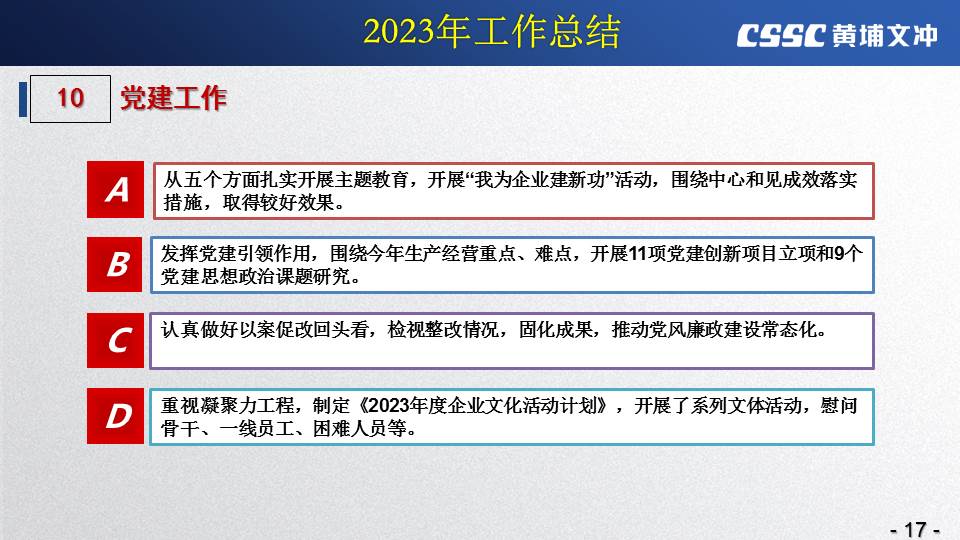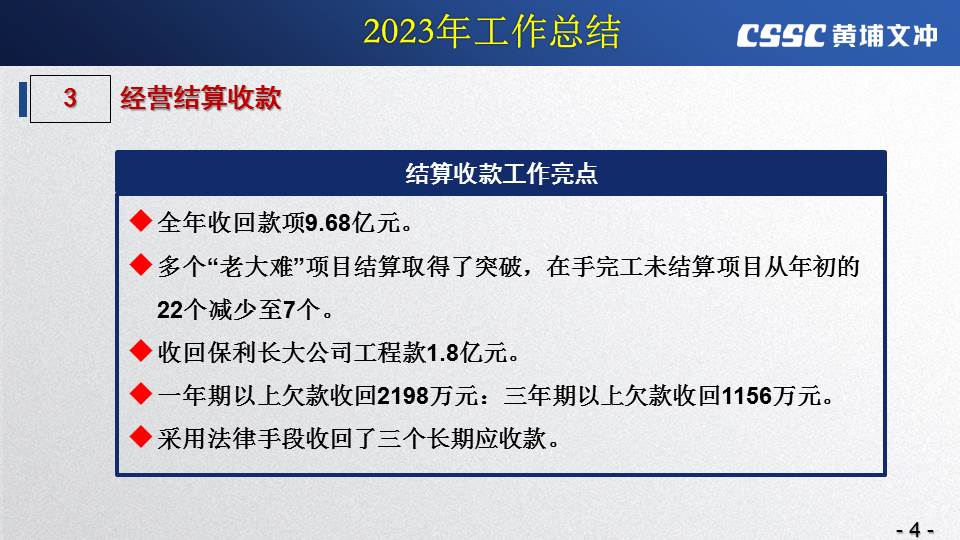 黃埔文沖公司李凱副總經(jīng)理對(duì)公司2023年所取得的成績(jī)給予了充分肯定,要求公司全體干部員工要認(rèn)清當(dāng)前形勢(shì),繼續(xù)堅(jiān)定信心、埋頭干、深耕市場(chǎng)、提升能力,為下一階段厚積薄發(fā)奠定堅(jiān)實(shí)的發(fā)展基礎(chǔ)。李總就2024年工作提出以下要求: